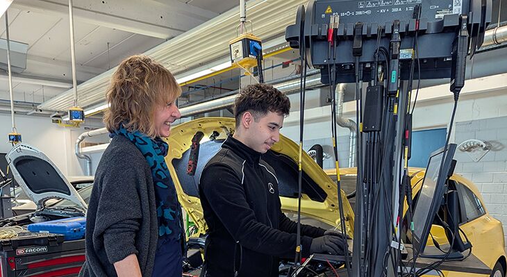 Der Besuch begann am Bildungszentrum Butzweilerhof der Handwerkskammer zu Köln (HWK). In einem Gespräch mit Richard Draga, stellvertretender Leiter des Trainingscampus und Leiter der Gesellenprüfungsabteilung, standen Themen wie Prüfungen, die Zusammenarbeit mit Unternehmen und die Weiterbildung zum „Meister“ im Mittelpunkt.